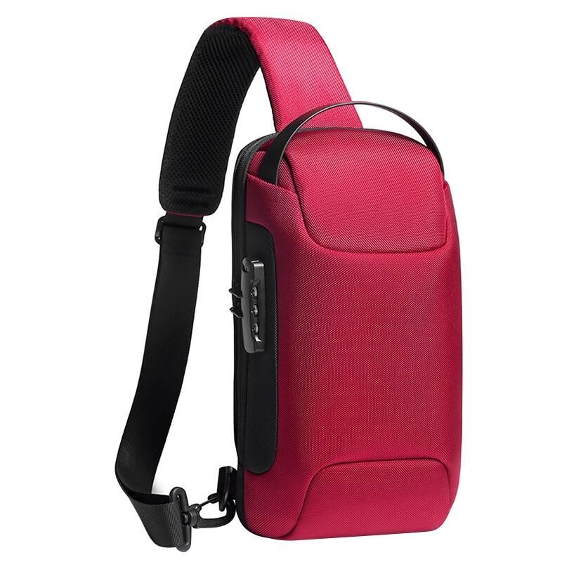 Waterproof Anti Theft Crossbody Chest Bag Men Oxford Cloth 34X18X10Cm - Red