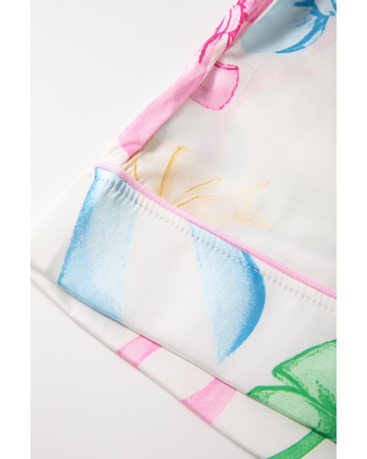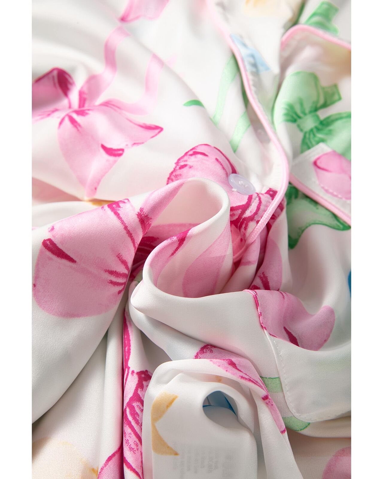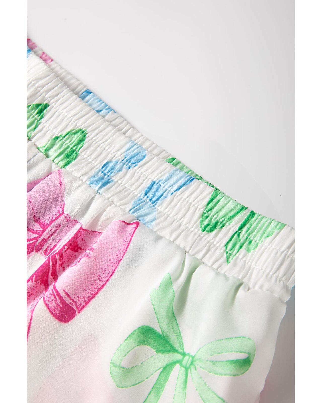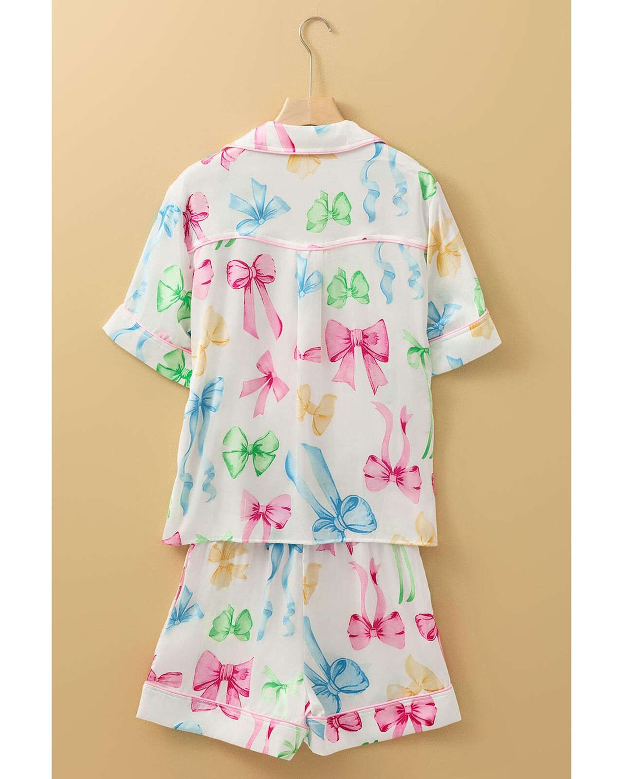 • White Bowknot Print Buttoned Shirt High Waist Shorts Pajama Set