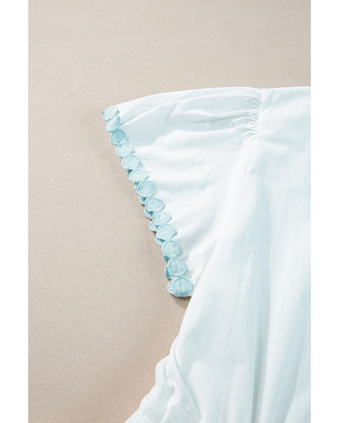 • White Colorblock Rickrack Trim Short Sleeve Drawstring Waist Long Dress