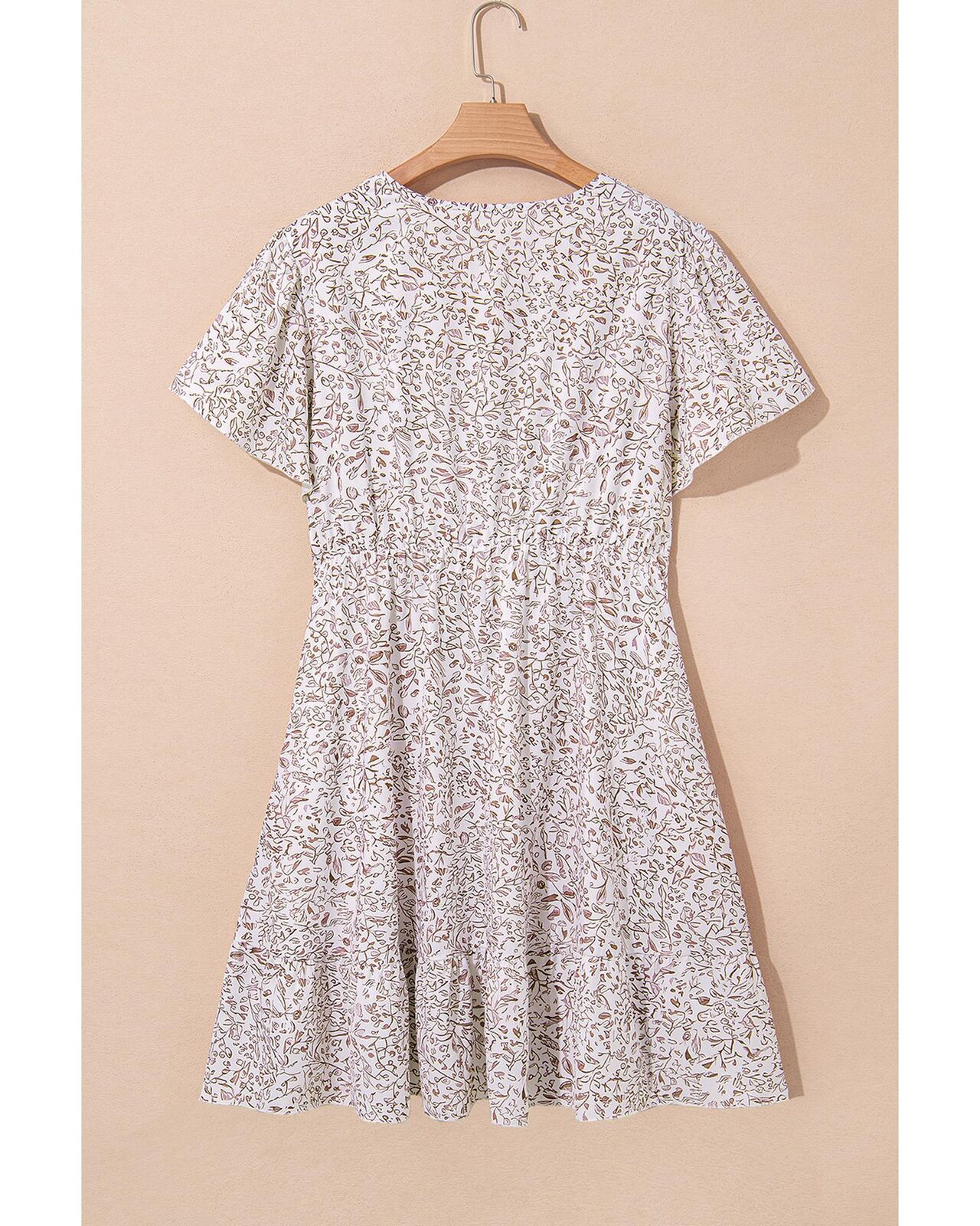 • White Floral V Neck Ruffled Short Sleeve Plus Size Dress