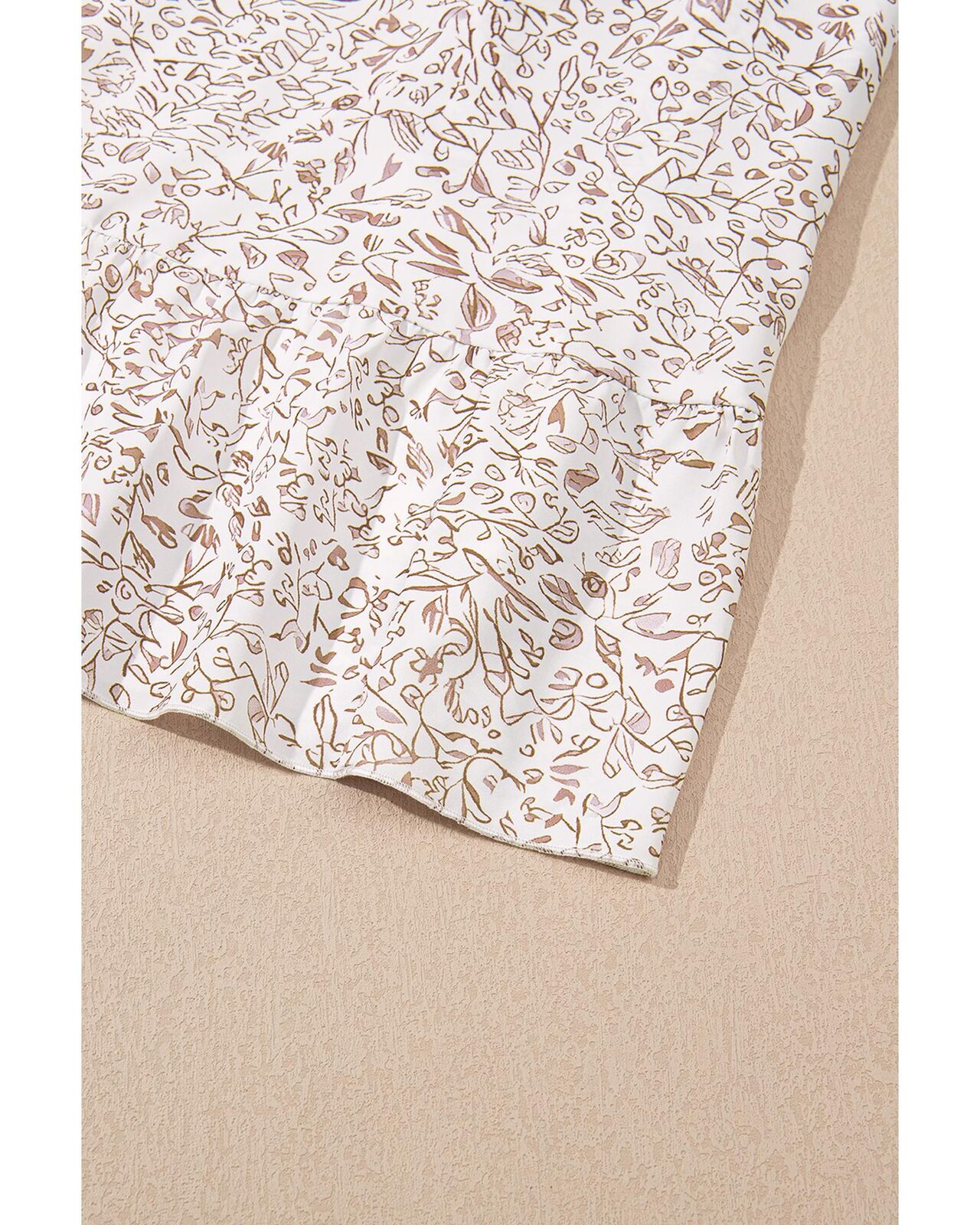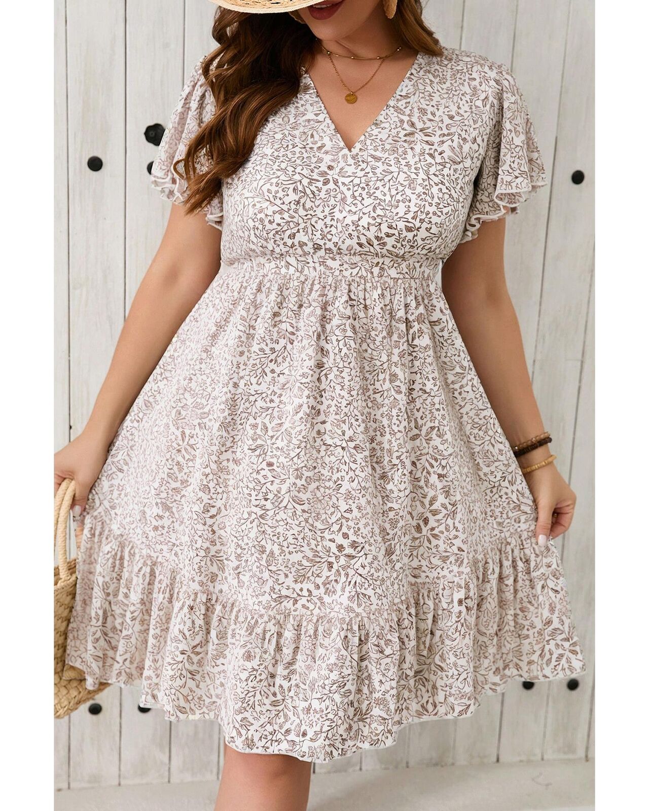 • White Floral V Neck Ruffled Short Sleeve Plus Size Dress