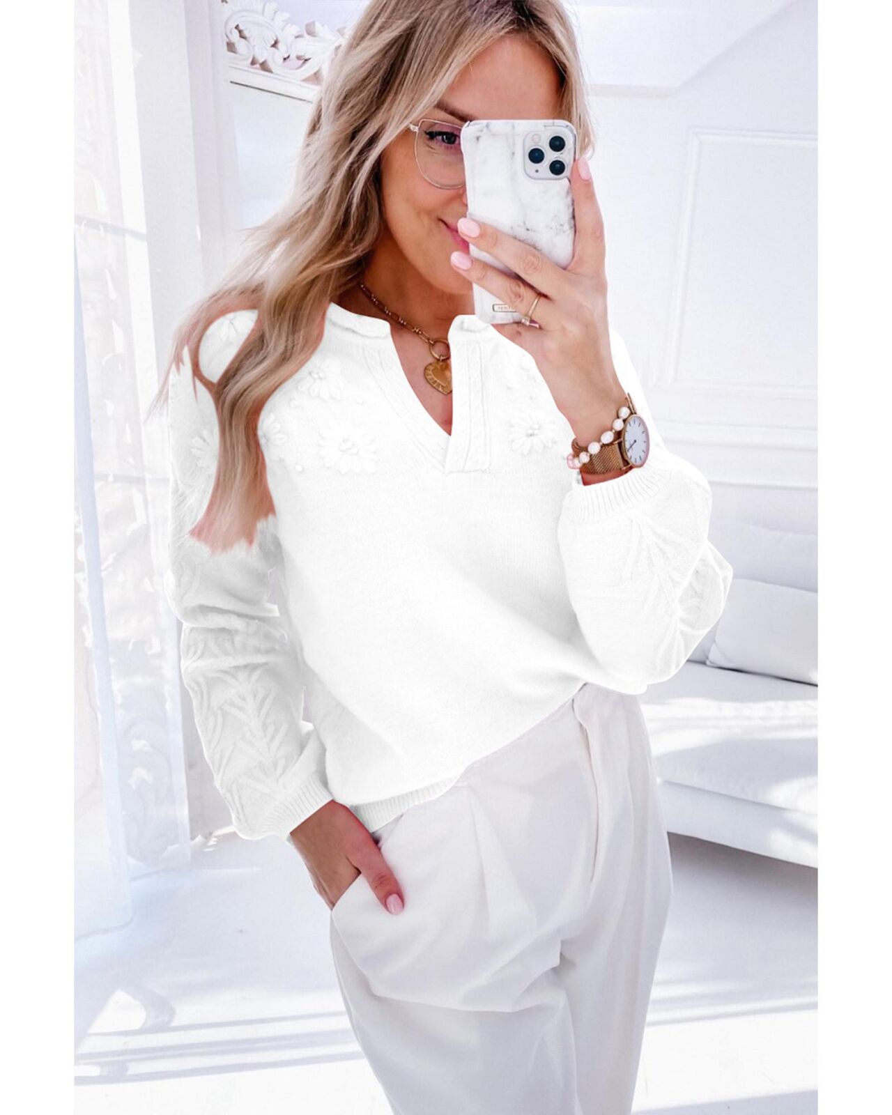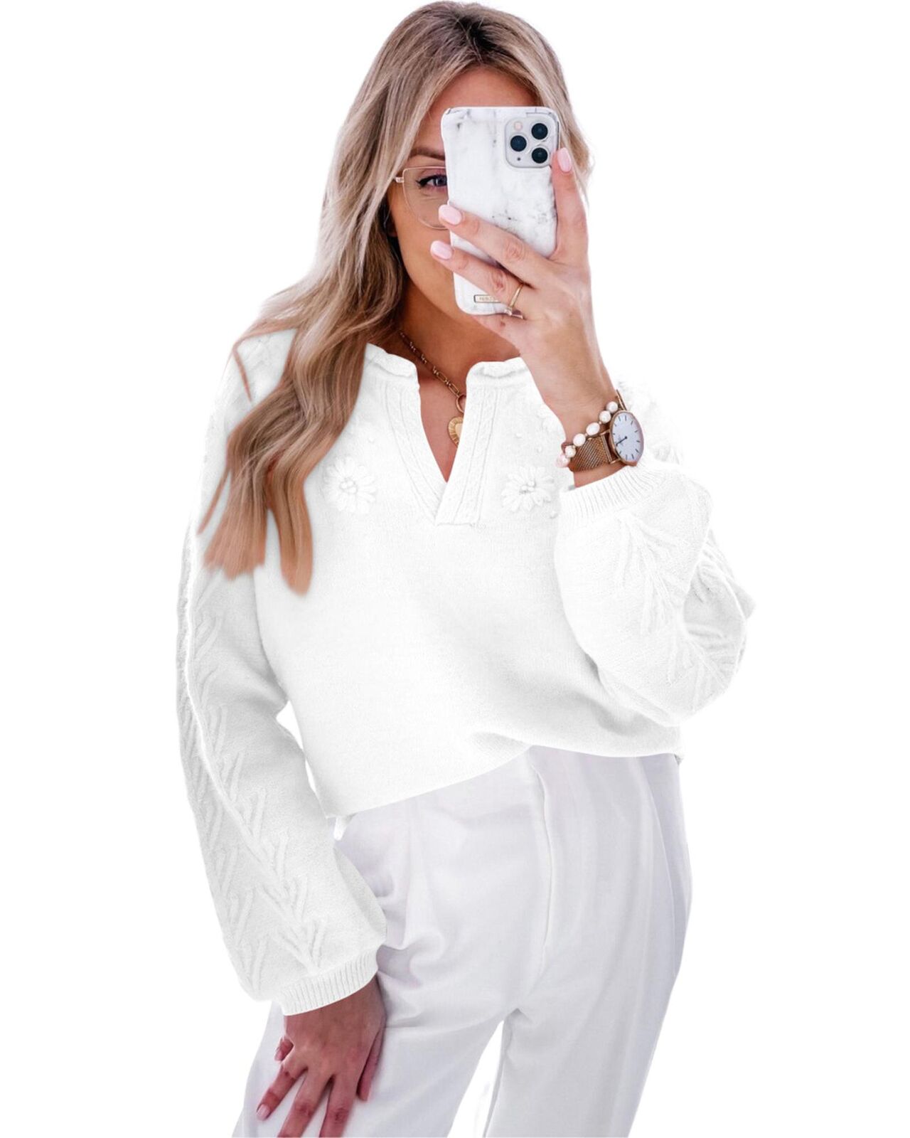 • Puff sleeve sweater for a feminine touch