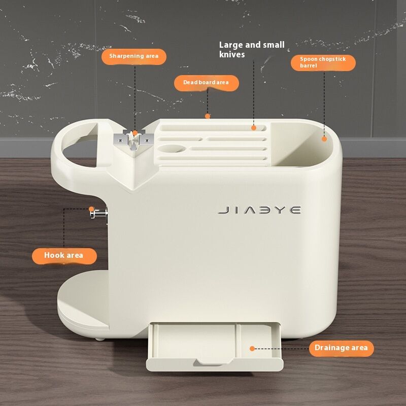 White Multifunctional Kitchen Knife Rack - Storage Organizer with Built-in Knife Sharpener, for Knives, Chopsticks, Cutting Boards, and Pot Lids