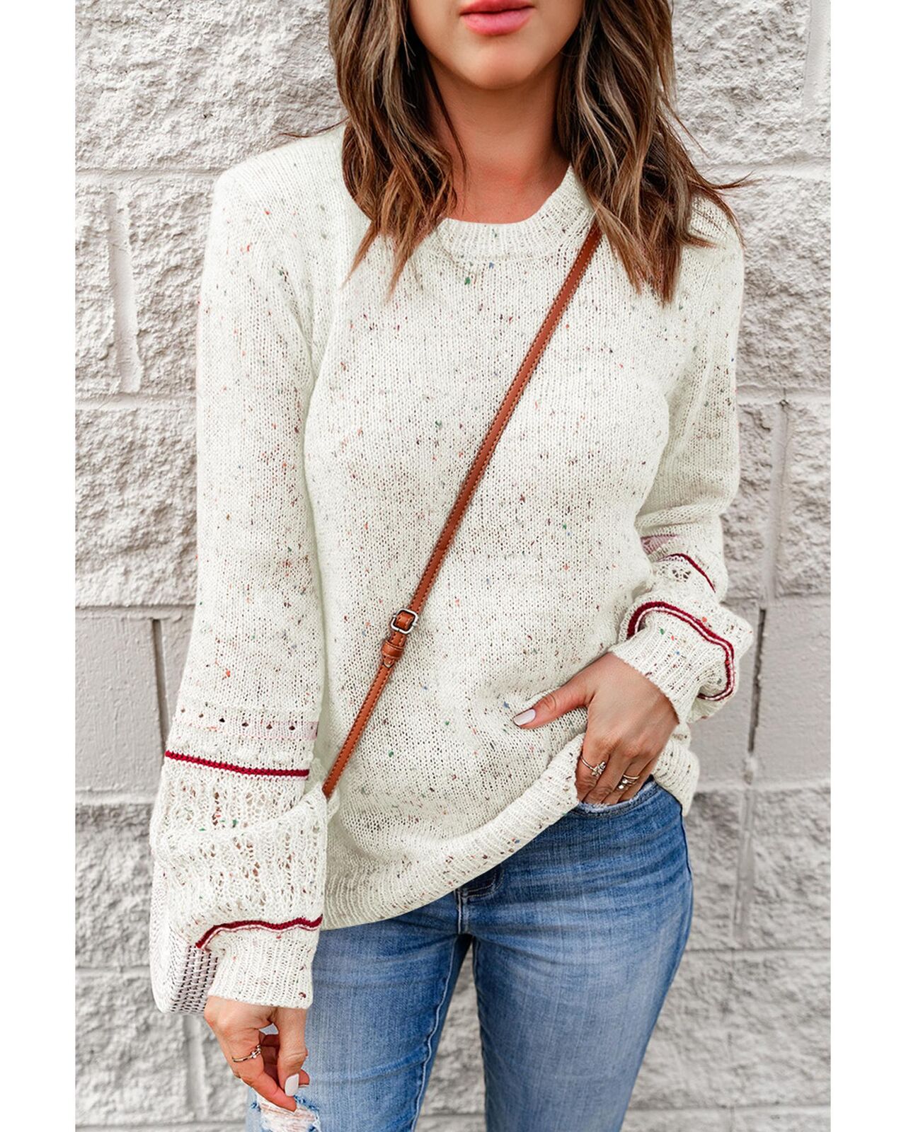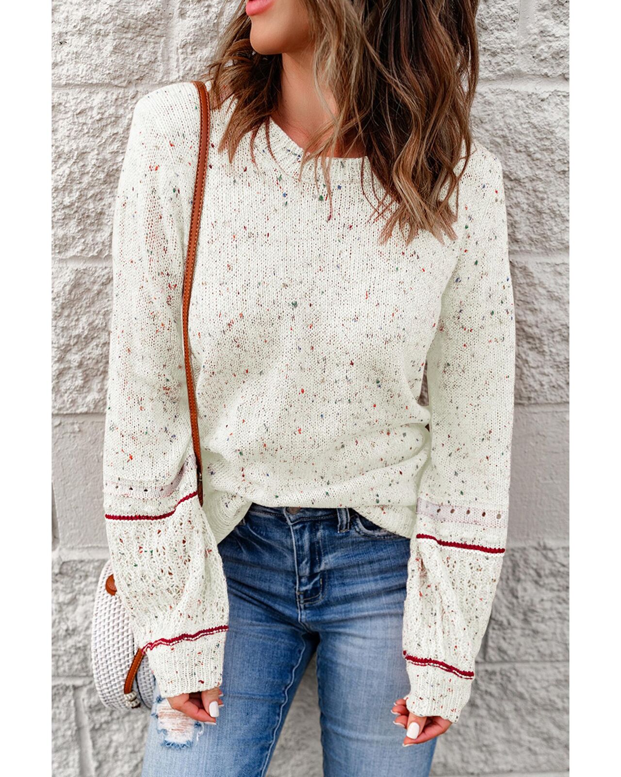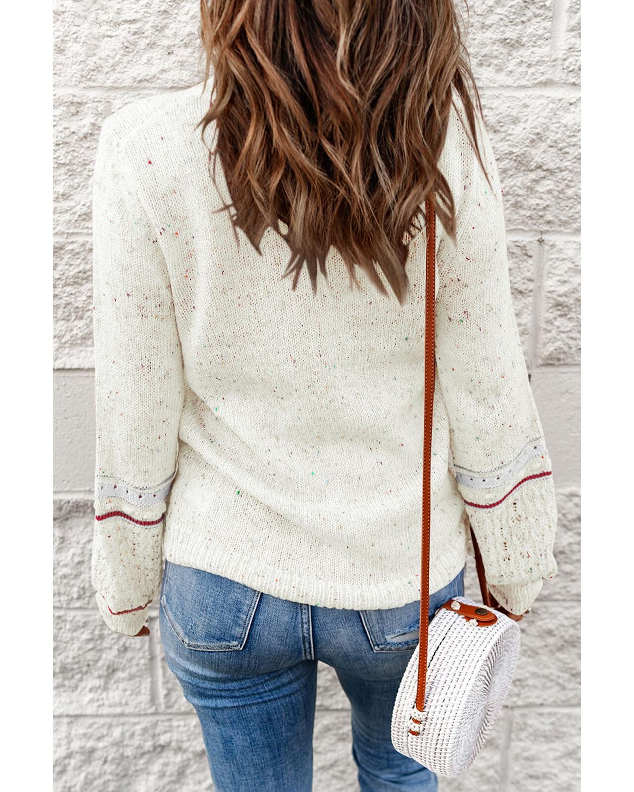 • Luxurious White Pilling Detail Patterned Sleeve Sweater
