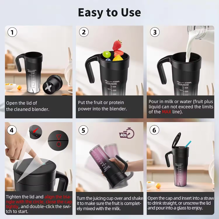 Stay healthy and energized on the go with our Portable Juicer. Perfect for outdoor adventures, travel, and daily use, this rechargeable juice cup features six powerful blades that blend fruits and vegetables into smooth, delicious juices and smoothies effortlessly. Its compact and lightweight design makes it easy to carry in your backpack or luggage, ensuring you can enjoy fresh beverages anytime, anywhere.