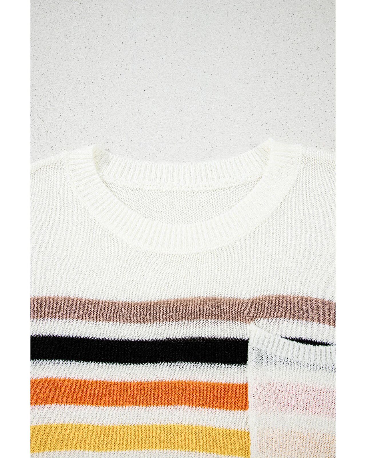• White Striped Pocketed Loose Fit Crewneck Knitted T