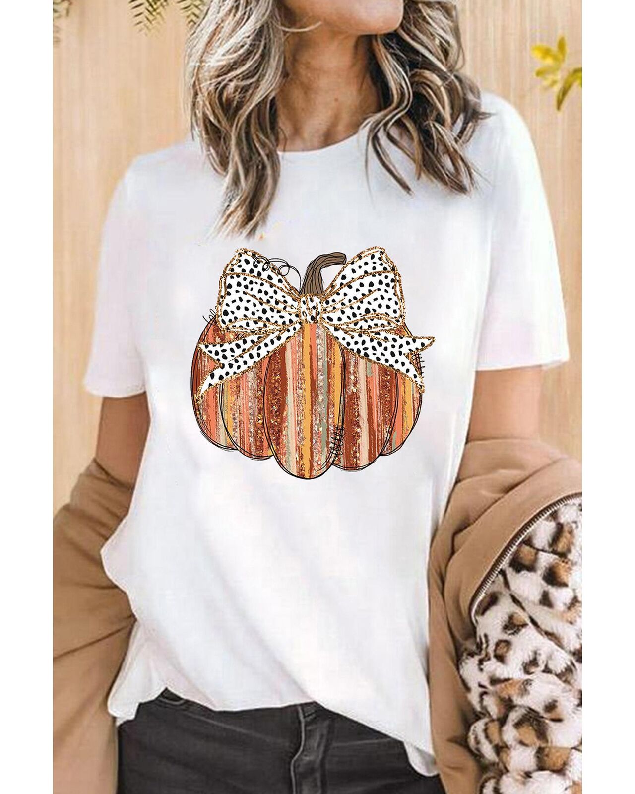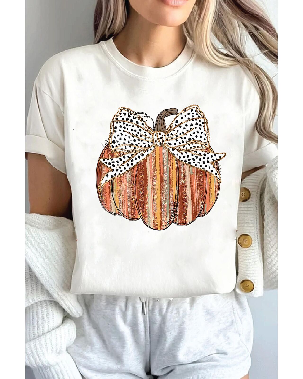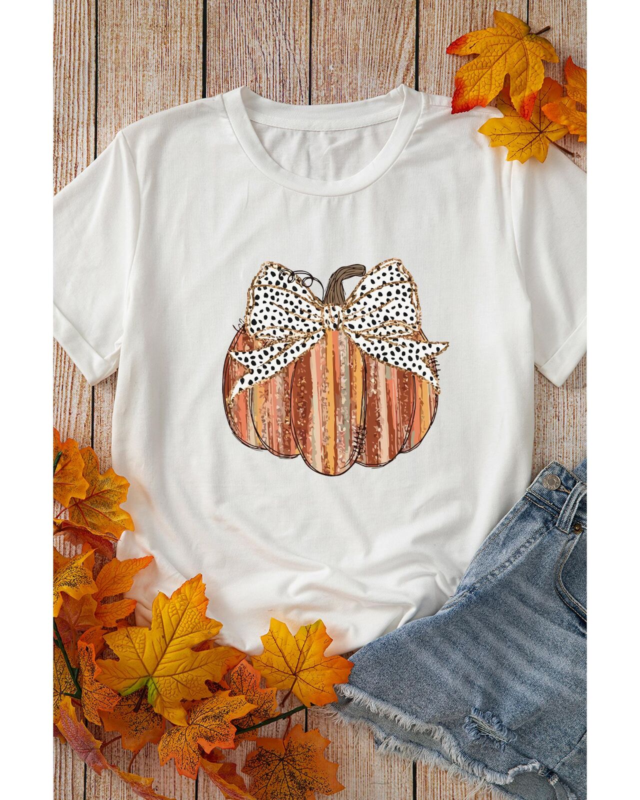 • shirt with bow knot and pumpkin print