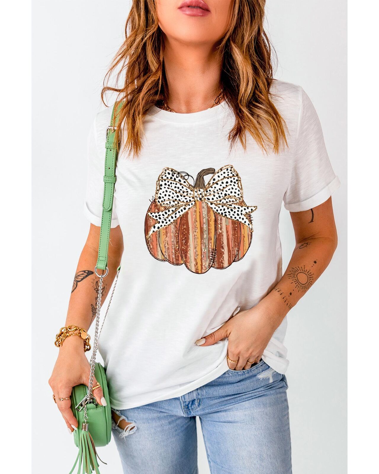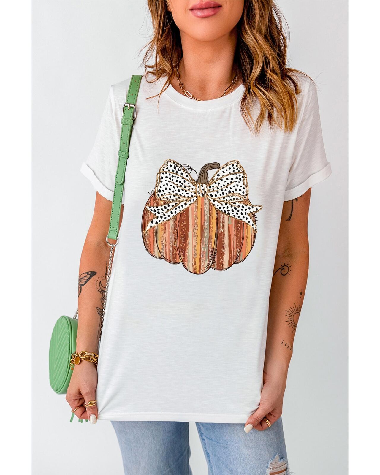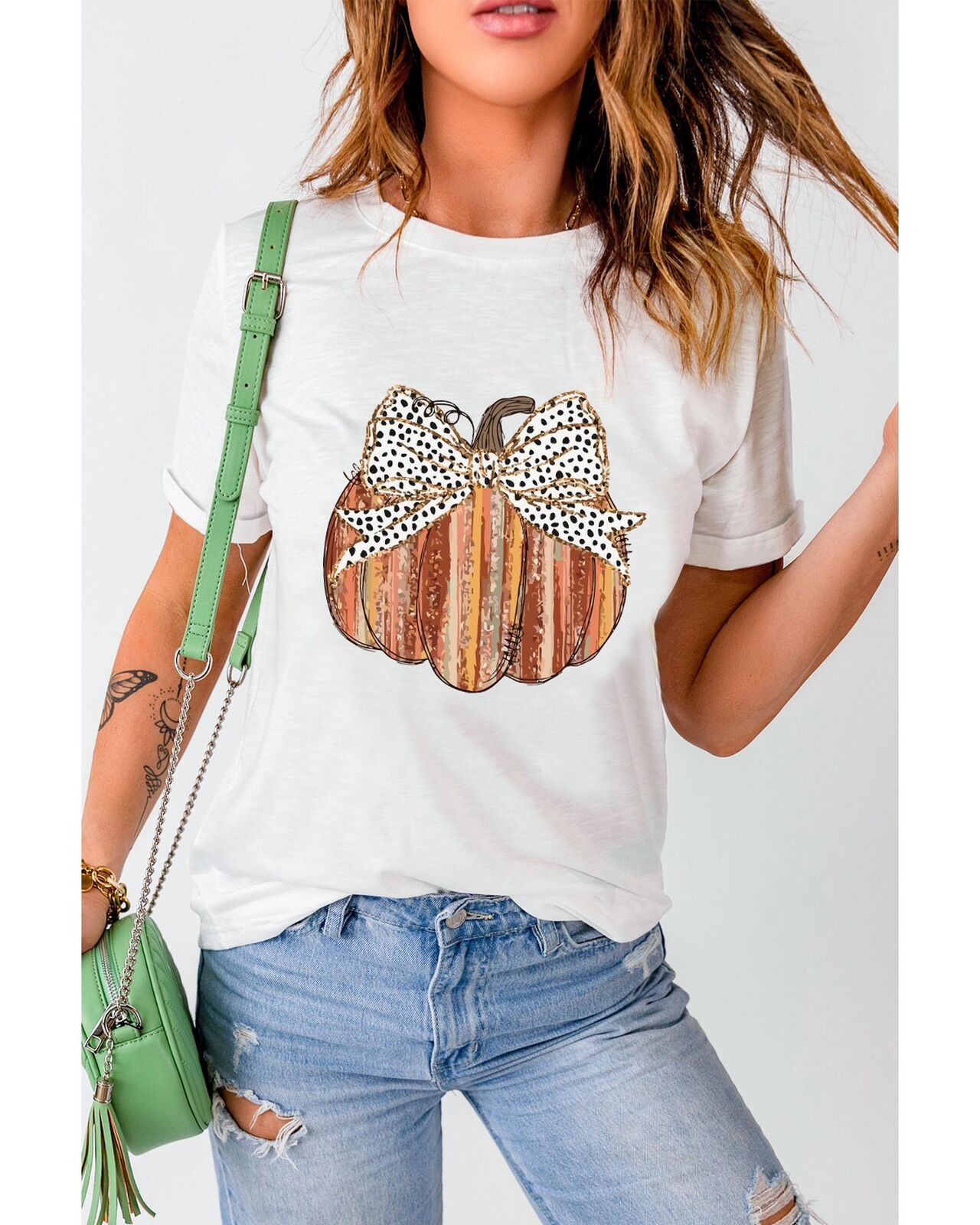 • shirt with bow knot and pumpkin print