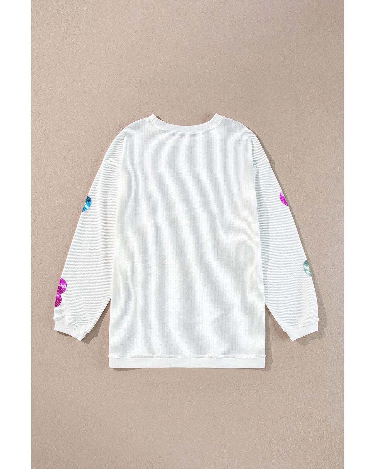 • White Valentines Slogan Heart Sequin Corded Baggy Sweatshirt