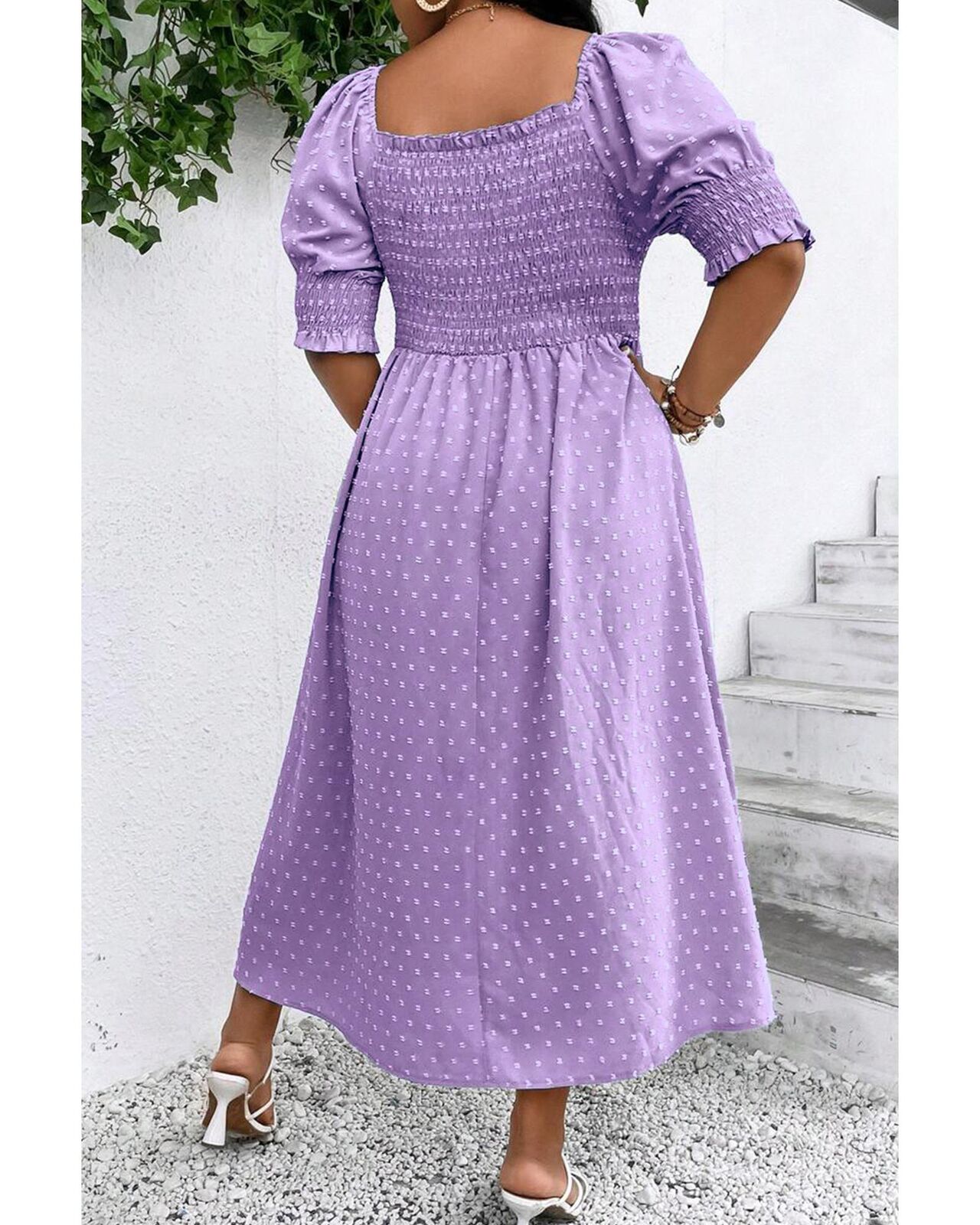 • Feminine Swiss dot fabric adds a touch of sophistication