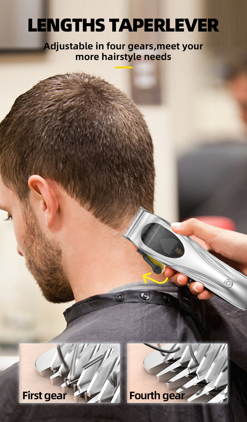 Upgrade your grooming routine with this Professional Hair Clipper Set. Designed for precision and durability, this hair clipper is perfect for home and professional use, providing smooth and efficient trimming with multiple guard attachments.