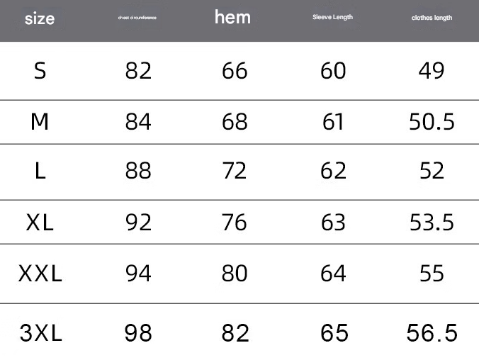 Please refer to the detailed size chart in the product images for accurate measurements.