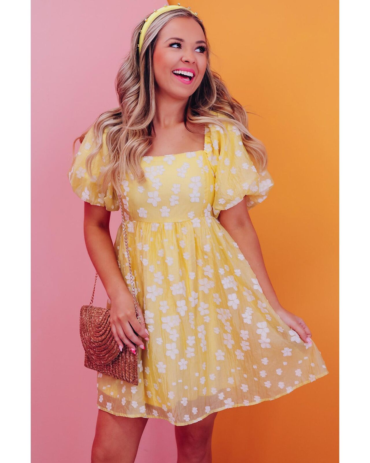 • Square neckline and puff sleeves for a modern twist