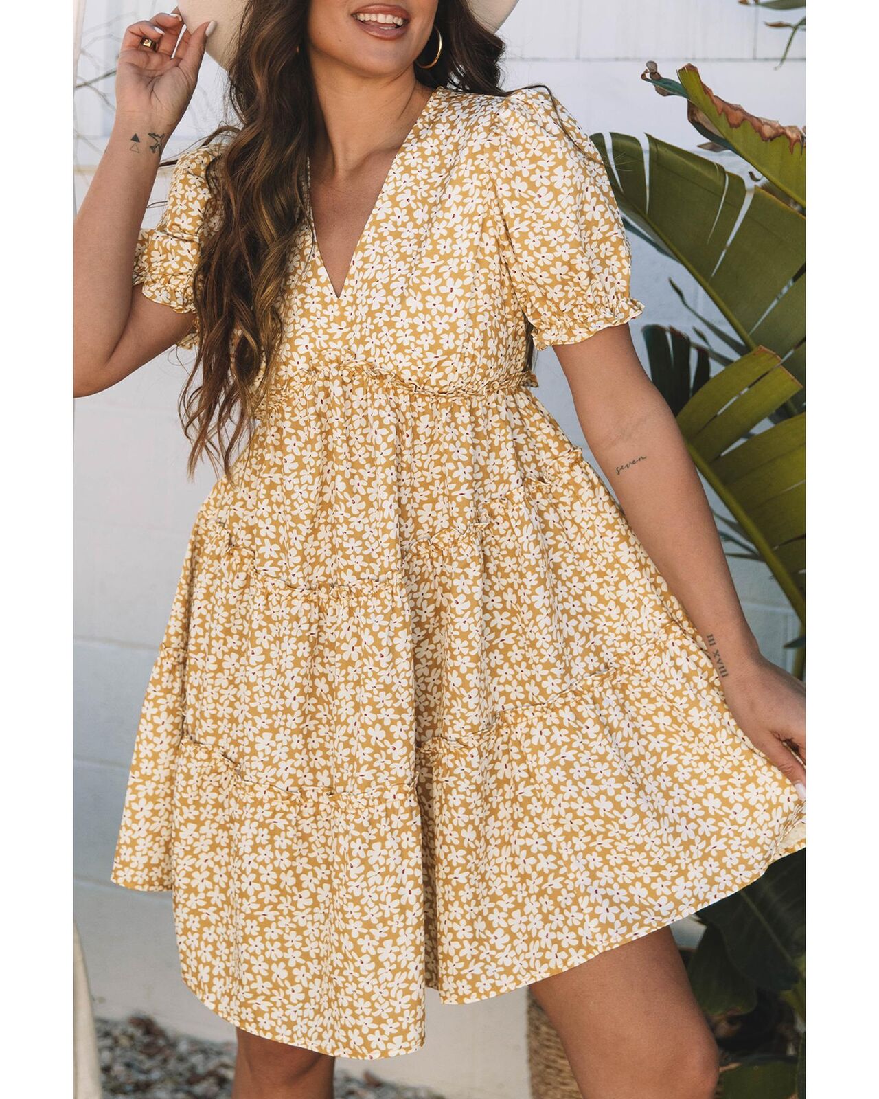 • neckline with tiered frilly details